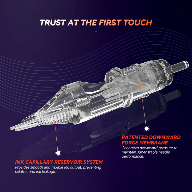 Benefit from larger ink storage, exceptional ink flow, zero splatter, and unmatched needle stability and accuracy. Made with medical-grade plastics, silicon, and the finest stainless steel (304 & 316), these cartridges offer unparalleled quality and performance.